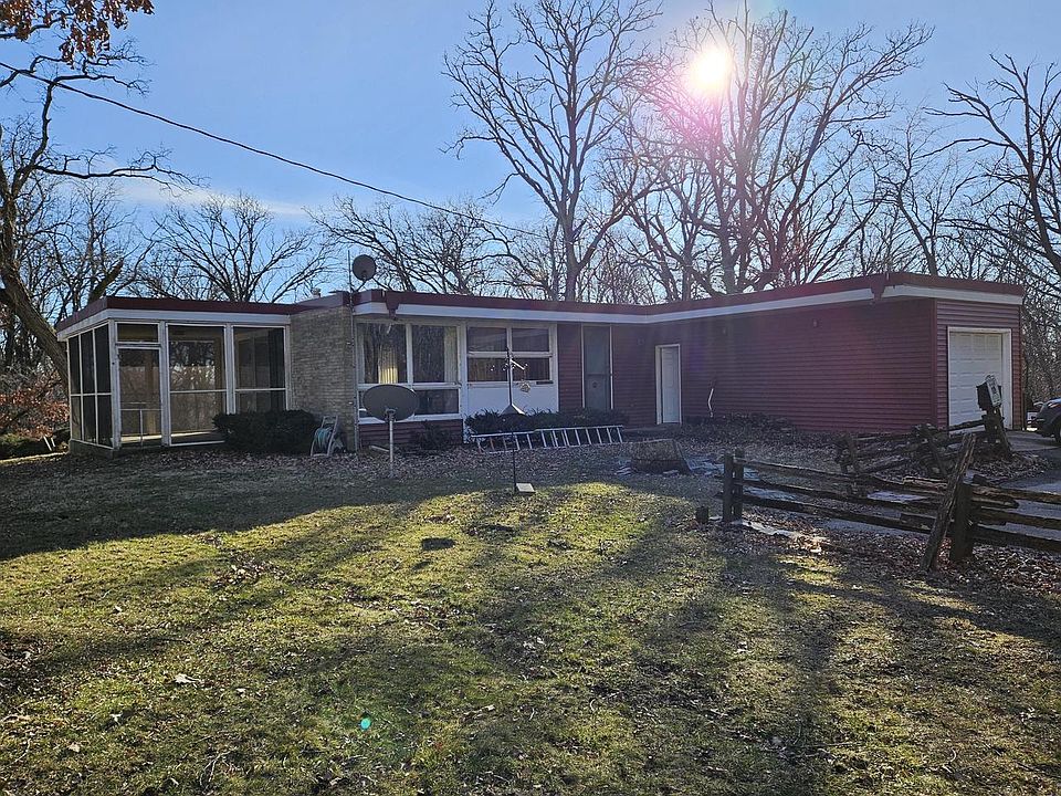 Situated amongst 4 Acres of Towering Hickory and Oak trees you'll find a 2 Bedroom (easily could be 3) 1 1/2 Bath Ranch home just minutes to Hwy 43, Delavan Lake, and the IL/WI Border. Features include Walls of Windows looking out to your wooded land, Hardwood Floors in much of main level, Generous parking area on paved driveway, Huge Screen Room with concrete floor and Walkout Lower Level with screen door and garage door. Approximately 1 acre of land is manicured and 3 acres are woods. There is so much potential here for a stunning place to call home!