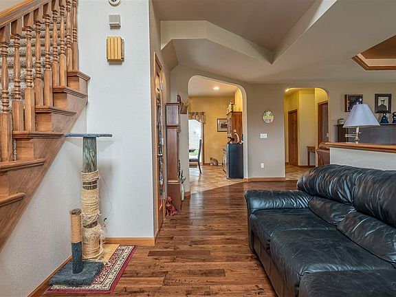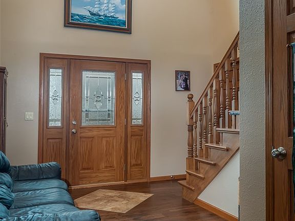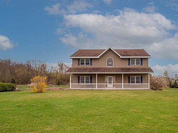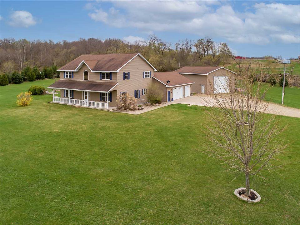 Experience peaceful country living in this 4500+ sqft upscale home situated on 5 acres. You'll notice the attached 3 car heated garage as soon as you drive in, as well as an enormous 30x48 outbuilding. The outbuilding has a 30 amp RV outlet, upstairs storage area, and built in chicken coop with covered run in the back. The chicken coop/run could easily be used for additional storage space for all of your toys! There's plenty of room for your 4 legged friends to roam with an invisible dog fence that surrounds the entire 5 acre property; just plug in your own control unit. You'll find a huge fenced in garden space for your green thumb as well as several fruit trees (3 varieties of apples, cherry and pear) and 4 large rows of mature asparagus. A 10x12 Tuff Shed with fenced pasture finishes the outside space.Quality materials abound inside the home and features are endless! The main floor has a large open concept design for all of your entertaining needs. Durable 12x12 ceramic tiles, wood flooring, solid wood doors and 10 foot ceilings are added bonuses. The carpeted living room has a pellet stove with realistic log kit and lighted tray ceiling to set the perfect ambiance for those cold winter nights. The kitchen features stainless steel appliances with a new Bosch dishwasher, gas range, mosaic tile backsplash and breakfast bar. Storage space abounds with all the oak cabinetry and not 1 but 2 walk in pantries! You'll find a ½ bath and den/office on the main floor as well. Walk out from the dining area to a large cement patio to enjoy a fire in the fire pit or sip a cool drink while relaxing inside the screened room. Upstairs you'll find a large landing perfect for a sitting area or reading nook. There are 2 large bedrooms, one with direct access to a full bathroom with a shower/jet tub combo. The laundry room is conveniently located upstairs with a large sink and includes the dryer and new large capacity washer. Rounding out the second floor is an amazing master suite. It's huge! The bedroom leads to a private balcony where you can enjoy looking out across the property. The master bath features double sinks, a large walk in closet, 2 person jet tub and extra large walk in tile shower with dual shower heads! And there's more! The basement is fully finished with several possible uses. It was originally designed as a 1 bedroom in-law apartment with full kitchen/dining area, living room, and a full bathroom with walk in tile shower and laundry area. A second washer/dryer set as well as an electric range is also included in this sale. The current owners utilize this space as a large family/game room. With little effort this could potentially be used as a rental space for extra income as it also has a separate entrance from the main living space. Additional features include a Brinks Home Security System, High speed internet available and central air conditioning. Please wear masks inside the home. Thanks