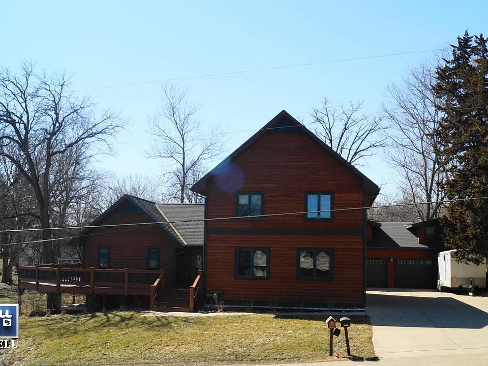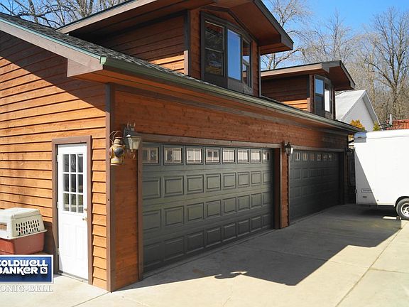 PRICED TO SELL!!!Large 4 bedroom cedar sided home just 3 blocks from the lake. Open floor plan, kitchen all new stainless appliances, 1st fl. Master, cathedral ceilings, full walkout lower level. Over sized 4 car garage with 2 large heated rooms above.enjoy summer nights on the wrap-around deck, overlooking the nicely landscaped lawn.