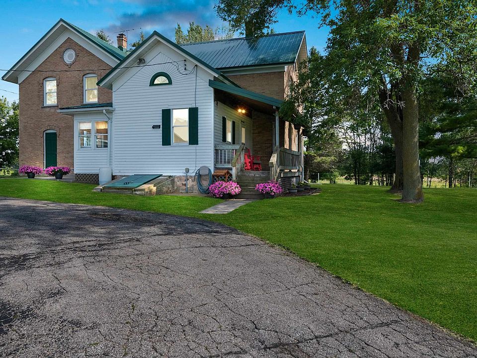 Hard to find, 4-5+ bedroom updated 1890 farm house. Great location for horses, farm animals. Mostly open and fenced pasture area on a total of 7.5 acres. 2 Story home offers an updated main floor including the kitchen with granite countertops, custom built maple cabinets, granite countertops and walk-in pantry. The full bath features tiled shower with lights. Updated flooring and pellet stove, and first floor laundry. Upstairs with an extra bonus rooms that can be turned into a potential primary suite. The furnace, breaker panel and well pump have been updated. The house and barn have newer metal roofs. Enjoy the summer breeze on your front porch while overlooking you property which includes pear, apple and cherry trees.