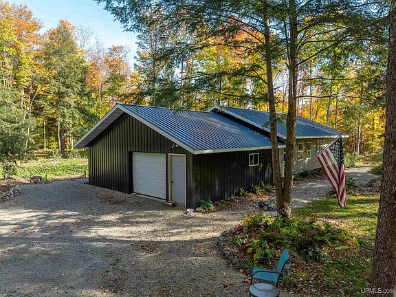 Here's a lovely home nestled in a very secluded area yet with easy private access and not far off the beaten path. This 2-year-old 1 bed/1 bath, with the possibility to convert the family room into a second bedroom, provides a very comfortable setting. The foundation is poured cement, great for storage. The structure is well built with ICF insulation from the crawlspace to the trusses, ideal for the UP winters. Fiber optics is installed and available. There are many adorable features for those that have gardening ambitions and just love the thought of being out in nature. The property has manicured trails leading to all corners of its boundaries and has many mature trees with an abundance of different species including maple, beech, cherry, hemlock, white pine, etc.. For snowmobiling and ATV's the Crossover Road can lead you to the many trails nearby. Just a beautiful and unique setting with all the pleasures inside and out. Very inviting for dogs, rabbits, chickens and other animals of personal interest. Set yourself today in the atmosphere that features our Yooper life!