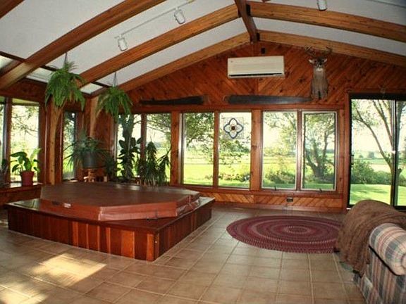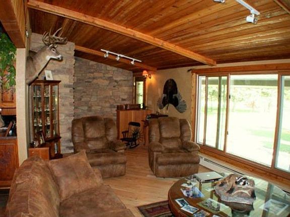 Wonderful country ranch home on 3 acres, expertly maintained and updated. Open living/dining floor plan includes private sunroom with big in-floor hot tub and vaulted ceiling; new kitchen with oak cabinetry, desk and appliances; rustic living room with finished pine ceiling and stone walls; 3 BR, 2 1/2 BA; huge basement with fireplace and workshop area. Property included spacious storage building, deck, patio, new mound system, outdoor decorations and newly sealed front walkway. A very nice e...