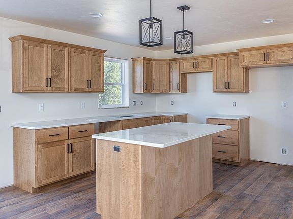 Island with seating spaceQuartz countertopsHuge attached closetOpen railCustom closet shelvingCustom soft-close cabinets