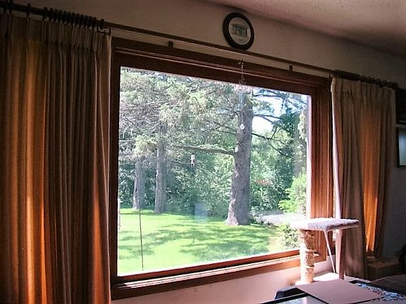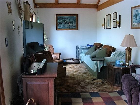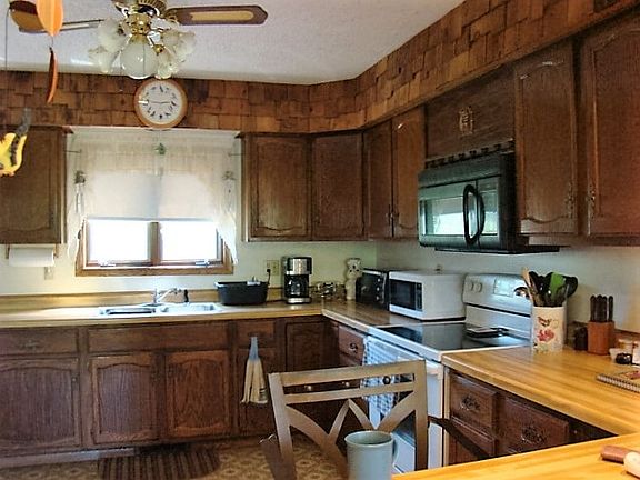 Nicely secluded house on 2 acres with views of the Prairie River. Enjoy your surroundings from the huge deck. First floor features a floor to ceiling brick fireplace, and patio door leading to a large deck. Open concept with 1st floor bedroom and full bath. Big u shaped kitchen w/appliances plenty of cabinets and counterspace. Upstairs features a very large bedroom and loft area that overlooks the living room. Large windows brings in the nature that surrounds this home. Also detached garage w workshop