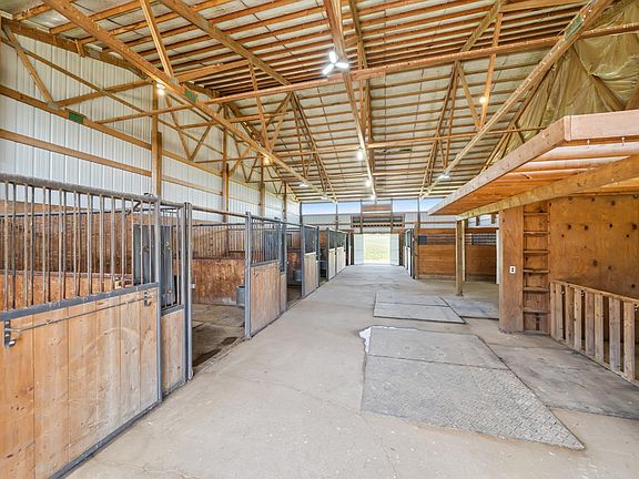 Dreaming of owning your own horse farm or boarding business? This property has it all! Welcome to your equestrian paradise—a picturesque farmstead designed for horse lovers, hobby farmers, & entrepreneurs alike. Nestled at the end of a long, scenic driveway, this stunning property immediately impresses w/ its beautiful landscape, thoughtfully placed shrubbery, & well-maintained high-tensile electric fencing w/ wood posts. The centerpiece of the property is a massive 60’ x 150’ barn, featuring six well-appointed stalls, a secure tack room, & an impressive 60’ x 114’ indoor riding arena with quality footing—ideal for training, boarding, or riding year-round. Out in the pastures, you’ll find five lean-to shelters offering shade & protection for your horses. Along w/ a 30’ x 10’ chicken coop, & a spacious grain bin just waiting for a creative touch—think BBQ hangout or unique outdoor entertaining space. A 30’ x 40’ granary adds even more potential, ready to be transformed into a second barn, workshop, or your next DIY passion project. Tucked away on the back lot, the cozy and inviting 4-bedroom, 1-bath home offers the perfect retreat, blending privacy with pastoral charm. Whether you're starting your dream horse business, expanding your current operation, or simply craving a serene lifestyle surrounded by animals and open land, this property is ready to make your vision a reality.