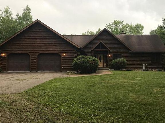 Private Lodge! A beautiful log home on 40 private secluded wooded acres. Spacious LR w/vaulted log beam ceiling & fieldstone woodburning fireplace. Loft area offset by cathedral windows overlooking the forest. Hickory kitchen cabinets w/pantry all hand crafted, dinette area with patio doors to deck; ceramic tile floors. 2 car garage w/opener, outside woodburning furnace. Prime hunting land w/trails, trophy bucks, turkeys. Wisconsin River within walking distance. A half hour drive to Wausau.