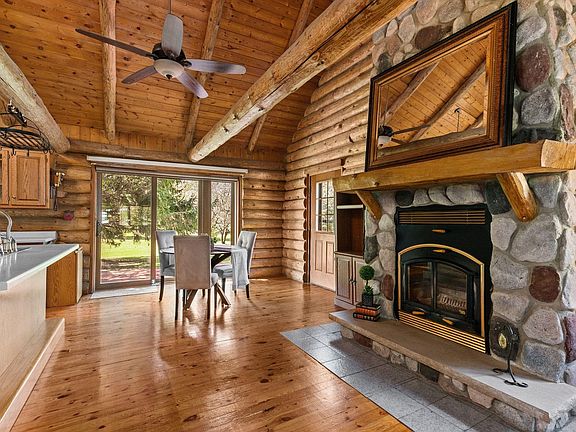 Welcome to this serene log home nestled on 1.88 acres. Featuring an open-concept design with a loft, this property combines rustic charm with modern updates. The home offers 2 full bathrooms, a wood-burning fireplace, and a basement ready to be finished to your taste. Recent updates include a new steel roof, A/C unit, and doors. Outside, you'll find a spacious 3-car detached garage along with 2 storage sheds--perfect for all your hobbies and equipment. Located just minutes from Appleton, this property offers the perfect balance of privacy and convenience.