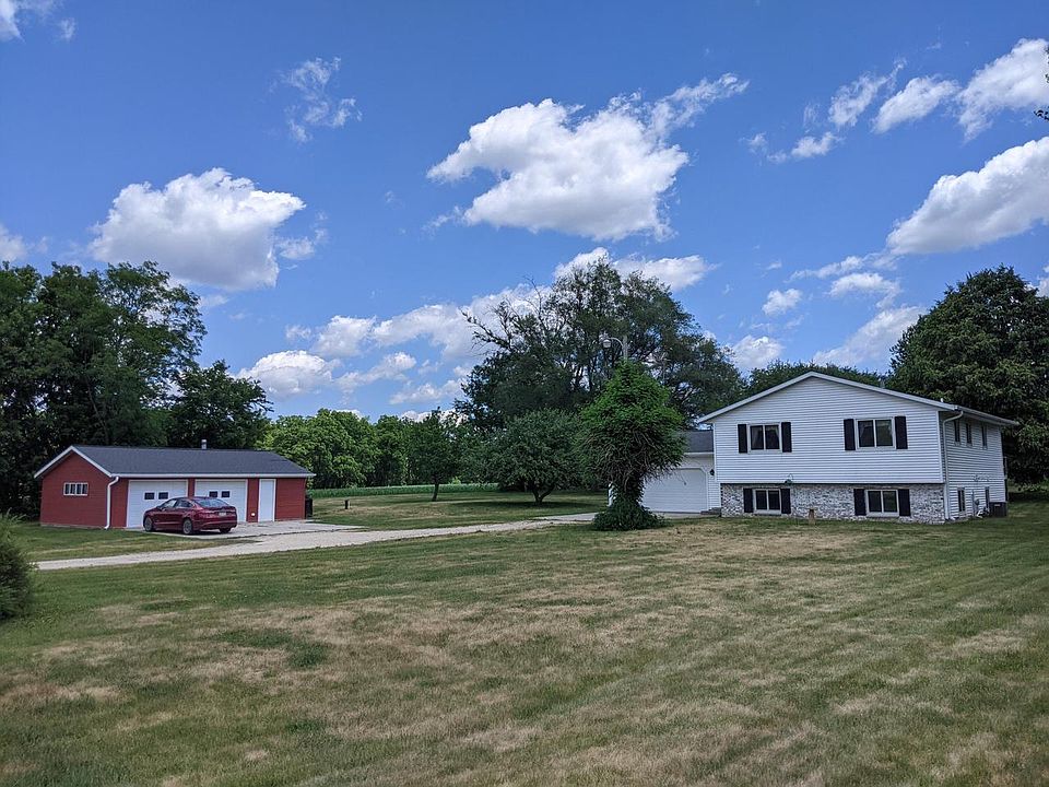 Well cared for home on 2 AC with great country views. This 3 bedroom, 1.5 bath home is just outside of the city limits. It's set farther off the road & has several mature trees for some nice privacy. You'll enjoy the big backyard & wildlife sightings from the newly built deck. The finished lower level features a 3rd bedroom, huge family room with newer laminate flooring, 1/2 bath & an extra kitchen previously used for canning & entertaining. Need a 4th bedroom? Take out the 2nd kitchen! The 2 car attached garage is insulated & the extra detached garage (32x24) is insulated & has a wood burner for some added warmth on those cold days/nights. Home is broadband internet ready!! 1 year Home Warranty included. A-3 zoning allows for 2 large animals! Come take a look today!!