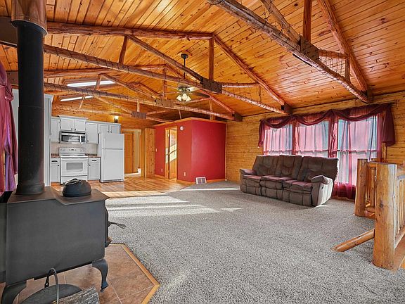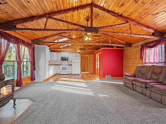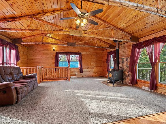 Embrace the charm of country living in this stunning log home, featuring four spacious bedrooms and two full bathrooms, along with convenient first-floor laundry. Unwind in the expansive lower-level recreational room or enjoy nature from the newly built back deck. A cozy wood-burning stove on both levels adds warmth to your evenings. Set on over 7 acres of serene wooded land, this property offers a tranquil retreat. You'll appreciate the two large detached garages, including one with a 12-foot door, perfect for storing larger items and recreational toys. With hunting opportunities right on your property and the city just a short drive away, this home beautifully balances seclusion and accessibility. Don’t miss out on this exceptional property—schedule your private tour today!