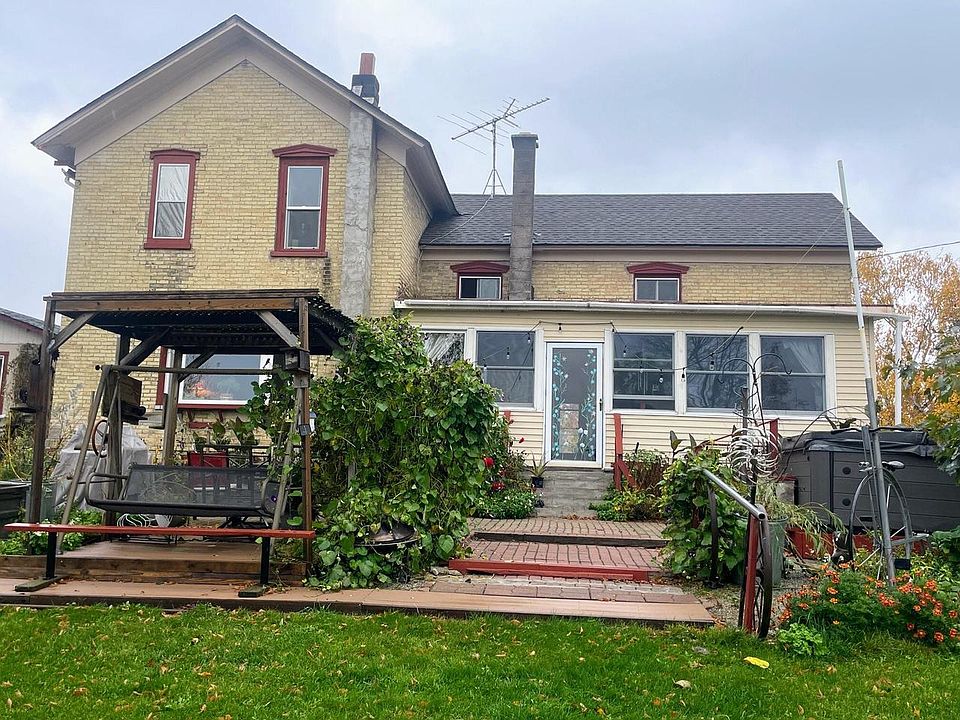 Come enjoy country life in this brick farmhouse on 2.5 acres. Privacy, lots of deer, birds & bees with spectacular sunrises and sunsets. Established grapevines, fruit trees & large garden. Potting shed with steel roof (from 1850s was the farm house), with deck off back for hunting. Large chicken coop & room for up to 2 horses. Home features 2 car detached garage PLUS a 4 car outbuilding. Improvements include: newer furnace with add-on wood furnace, windows, doors, refinished floors, and so much more. It's a must see!Added bonus - township plows the driveway for first 1/4 mile