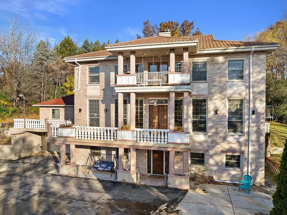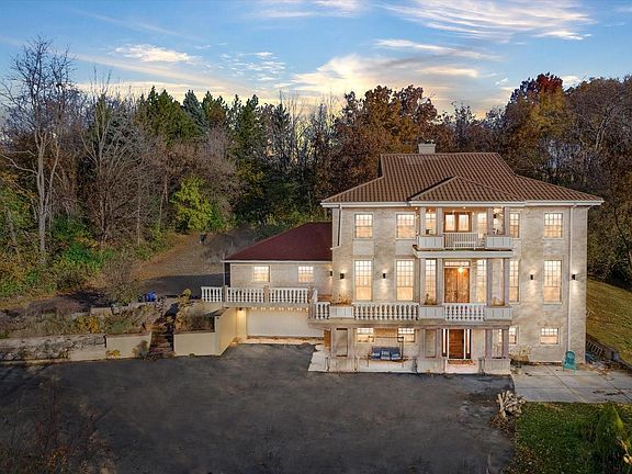 Experience resort-style living in this one-of-a-kind Contemporary-Mediterranean estate set on 5 acres of pure serenity. Spanning nearly 6,000 sq ft, this architectural masterpiece blends grandeur and warmth with soaring ceilings, walls of glass, and exquisite craftsmanship throughout. The chef's kitchen with Viking and Wolf appliances opens to elegant living and dining spaces anchored by a stunning stone fireplace. Retreat upstairs to the luxurious primary suite with a spa bath, walk-in closet, and private balcony overlooking your secluded oasis. The exposed lower level offers a full bar, additional family room, and dual fireplace--ideal for entertaining. With three fireplaces, heated floors, and a 5-car heated garage, this private palace redefines luxury living.