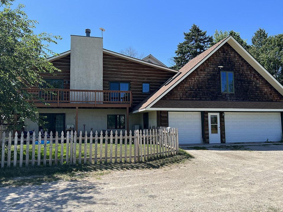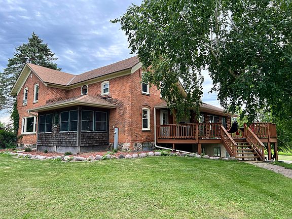 This original brick farmhouse on 23 acres was renovated and expanded with a log sided great room and owner's suite addition for over 5400 sq/ft living space with a 3.5 car attached garage. There are guest/rental quarters on the exposed lower level with a full kitchen, bedroom, and full bath. The separate upstairs main living area has a great room with fireplace adjoining the updated kitchen for an open concept. There are 4 bedrooms, a den, and 2 updated baths. The level acreage has a large barn for storage,(36X72). a metal pole building,(30X80), and 34 separated storage units for rental income. Updates include a new septic system, updated windows, kitchens, baths, mechanical systems, and more. This is a unique property suitable for many uses located with quick access to Hwy 60/Hustisford.