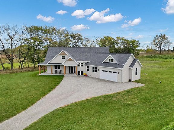 Next-to-New Custom Home on 13 Acres! Built in 2024, this stunning 3-bedroom, 3-bathroom home offers modern design and thoughtful craftsmanship throughout. Step inside to soaring cathedral ceilings and an open walkway overlooking the expansive living room, creating a truly grand impression. The open-concept layout centers around a spectacular kitchen featuring an abundance of cabinetry, high-end finishes, and an impressive 10-foot Durasein island--perfect for entertaining. Enjoy peaceful views of your spacious 13-acre property from the inviting dinette. The main floor master suite provides comfort and convenience, while the upper level offers addl bedrooms and a view overlooking the main living area. The lower level is a blank canvas w/three full-size windows, ready for your future plans.