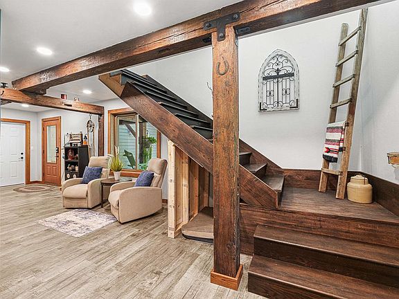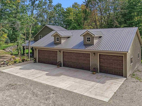 Built in 2022, this stunning home combines modern craftsmanship with the serenity of nature. Set on 6.56 wooded acres, it offers exceptional privacy while providing nearly 2,400 sq ft of thoughtfully designed living space. A rare 5-car garage is perfect for car enthusiasts, hobbies, or storage. Inside, open, light-filled spaces blend comfort & functionality with a contemporary feel. Step out to the beautiful back patio, ideal for relaxing, entertaining, or enjoying peaceful wooded views. With its modern build, generous acreage & secluded setting, this property is a true retreat.