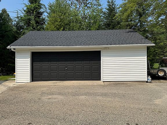 Kitchen features a 5-burner gas range with double electric oven, separate fridge/freezer pair, and built in microwave. The main floor hosts the great room, living room, ½ bath, master bedroom with full bath, and connected office. The second floor has 2+ bedrooms and a full bath. The property features 3 garages with power, a full basketball court with SportCourt tiles and commercial grade hoops by Bison with glass backboards.