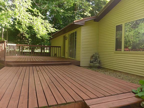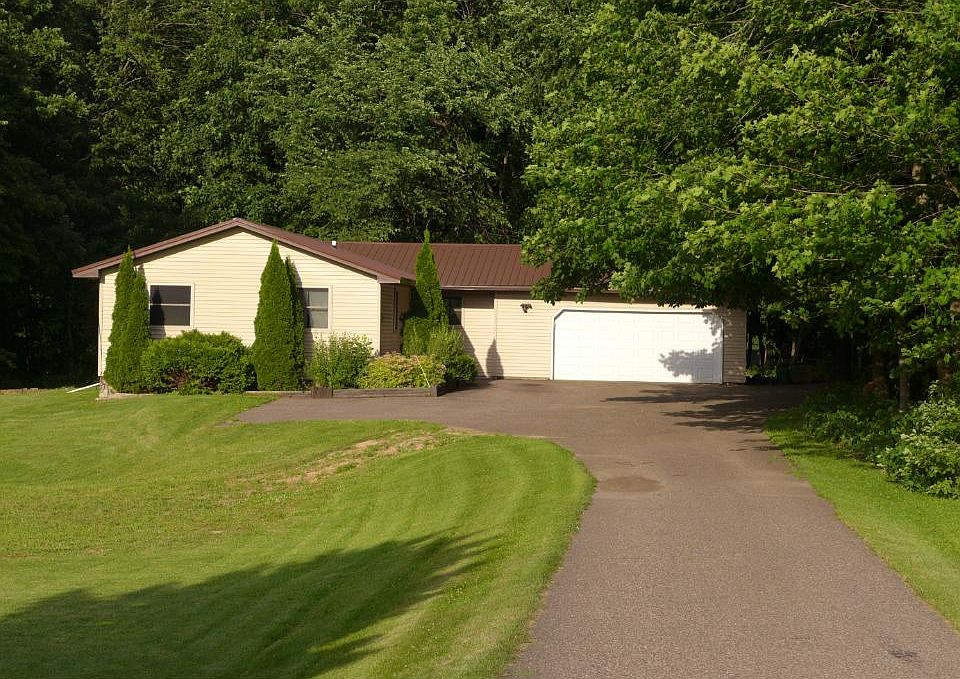 Nearly 1 Acre setting offers a secluded 2292 sq ft 3BR/2BA home with 2 car attached garage and asphalt driveway! Convenient country location is only 1 mile from town! New metal roof, siding, windows and doors done in 2010. Find all three bedrooms on the main floor; master has a door to the main floor full bath. Two non-conforming bedrooms on the lower level just need egress windows (they have closets). Large living room features a big picture window for natural light. Eat-in kitchen provides a breakfast bar and big pantry. Hang out in the lower level family room boasting a bar area, Pine walls and standalone gas fireplace. There is a lower level 3/4 bath as well. Relax in the great backyard with mature trees, a two tiered 16x32 deck and built-in firepit area! Includes LP forced air furnace; central air; water softener. Appliances consist of the range, microwave, refrigerator, freezer, lower level washer and dryer. Property will be sold As-Is. Ellsworth at stoplight: East on Hwy 10/63 (Main St), South (Right) on County Road C to property on Left.