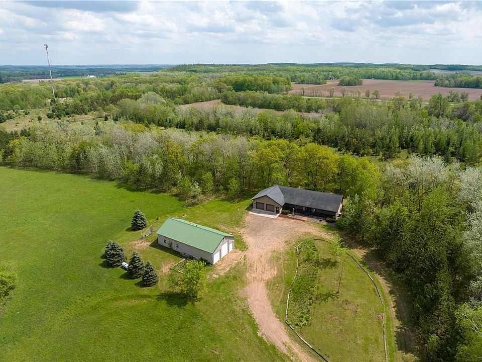 Peaceful country living on 71 acres! This beautiful, 4-bed/3-bath home offers the perfect blend of up north charm & modern amenities. The large chef's kitchen is a culinary delight boasting 42 ft of cabinets and gorgeous oak floors. Relax in the cozy sunroom complete with a ledge stone fireplace & hickory floors. Enjoy entertaining guests in the spacious living area, rec room, and/or family room. The large owner's suite features a sizable walk-in closet with built-in drawers for ample storage. 3 inviting decks provide perfect spots to enjoy the serene parklike surroundings w/ perennial flowers, mature trees and fresh country air. With a great mix of potentially income-producing fields & woods loaded with abundant wildlife make this property ideal for hunting or leisurely strolls. Ample storage with a 30 x30 ft attached garage & 30 x 60 ft pole building that includes an insulated/heated 30 x 30 ft workshop with full bath that potentially could finish into a guest house. Great rec area!