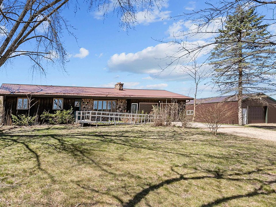 Charming 3 bed ranch nestled on 1.9 acres, boasting a 30x50' pole shed & deeded water access to Bear Lake! Nice quiet country location with a fenced back yard & 2 patio areas. Inside, discover a delightful floor plan with a 23x17' cabin room that features cathedral ceilings with backyard access. New vinyl kitchen flooring & carpets throughout! Cozy up to the wood burning fireplace in the LR or finish hooking up the freestanding gas fireplace stationed in the cabin room. Oversize 2 car attached garage compliments the home. 30x50' Cleary Pole Building with concrete floors ready for immediate use. Deeded waterfront access-see attached map, is yours to enjoy. Newer metal roof, hot water & forced air heat & central air. Seller requests 48 hours for binding acceptance on all offers!