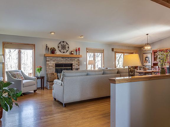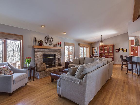 Welcome home to this beautiful single-owner ranch located in desirable Ridgefield Subdivision. Private wooded backyard surrounded by conservancy/outlot. Newly renovated kitchen w/granite counters & island, Maple cabinets w/soft-close doors/drawers, SS & Glass Range Hood. Kitchen is open to vaulted/beamed dining & LR w/FP. HWF throughout the main including bedrooms. Stunning finished LL w/kitchenette & Full Bath w/heated tile floor. Newer mechanicals. Make this home yours today!