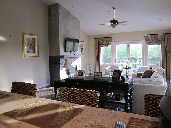 Enjoy Lake Country living in this stunning end unit with open floor plan & no shared walls offer lots of privacy. Sunlit Great Rm with stone GFP, vaulted ceiling, engineered wood floor, balcony access to panoramic treetop views. KIT offers breakfast bar, granite cntrtps, SS appliances. Spacious MBR w/ private bath, 2 lg closets. Laundry rm for full size washer & dryer. Elevator access to heated underground parking. 21 acre Florence Lake is yours to enjoy with pontoon, fishing & paddle boats plus private boathouse w/ rooftop deck. Enormous Clubhouse with 2 kitchens, fireplaces, exercise area.