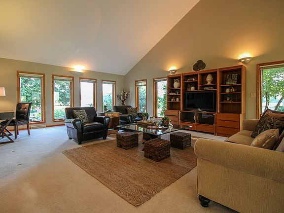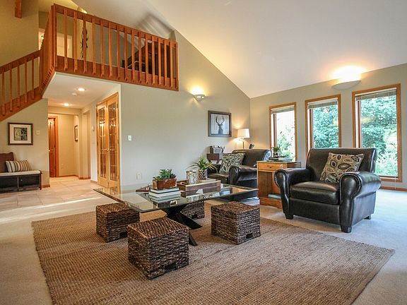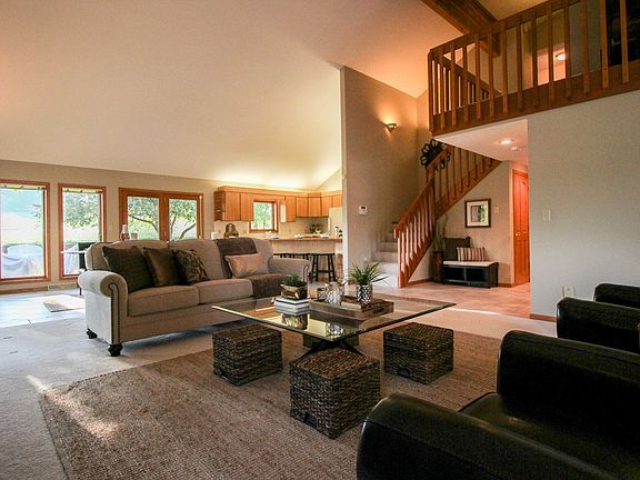 Cool country breezes in a serene setting embraced by green acres. This is what true country living is all about! Amazing rural property with great curb appeal. Home has been completely renovated from its original farm house style. Home includes 3 bedrooms, 3-1/2 bathrooms, vaulted ceiling, central vac, powder room, main floor laundry, sound proofed main floor master bedroom suite with accent lighting, luxury master bath & large walk-in California Closet. Master bedroom opens to sun room to protect you from the elements, yet allowing you to be bathed in the sun's glow. Upper level includes 2 bedrooms, full bathroom and a loft overlooking the great room. Finished lower level is open and bright with a full walkout. Perfect location for a family room or recreational area; includes built-in dry bar area and full bathroom. Inviting outdoor seating under charming pergola, sunken patio off lower level, spacious deck and shaded patio area surrounded by beautiful plantings. Sellers thought of everything with the remodel including an irrigation system, wiring for audio system and a multitude of windows that offer scenic views wherever you look! Plenty of storage with the 3 car garage, small outbuilding & a 40x60 pole barn with concrete floor. The floor plan & yard setting makes this home ideal for large gatherings inside & out!
