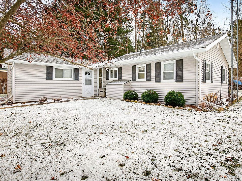 Adorable cottage w/20' of deeded access to Silver Lake. 2 bedrm, 1 ba ranch. Updated bathrm. Living rm w/wood fireplace. Kitchen w/updated cabinetry and appliances & washer/dryer unit included. Dining rm w/beamed ceiling w/patio doors to poured patio and yard. Detached oversized 2.5 car garage. Deeded access is shared between 4 property owners of Ronaldson Dr. Silver Lake offers recreation, sandy bottom & a retreat only 45 minutes from Fox Valley. Property is located close to Evergreen Campground, Kusel Lake, Wilson Lake, Round Lake & many others.