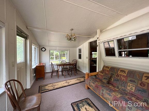 Fantastic property with plenty of privacy and recreational opportunities! This 30 ACRE piece adjoins miles of State Land and an abundance of hunting and wildlife experiences. There are trails throughout great for ATV, walking & snowshoeing. Hunter’s dream with the 2 blinds and a ladder stand already set up with a food plot area and runways. Sellers have been successful hunters every year here! Acreage is wooded with maple, poplar, white birch, pine & approx. 5 acres of large cedar that can be harvested. Camp is approx. 750 sqft which began with a camper and then added additions starting in 1990. Has a café feel inside with a living room, family room area, 2BR, and a bath with shower and sink (no toilet). Has drilled well (Kopecky), no septic. Gas stove, 2 refrigerators, electric water heater, electric space heat. 220 amp service. Seller has cared for this place for many years, made the most of the space and has paid attention to detail. So well kept! Even the outhouse is neat and clean with electric. Cabin is well insulated, heats well in winter and easy to winterize too. There’s also a 24’ camper for extra sleeping which you can plug into the garage for electricity. 24x32 garage well built with above storage (North Bay Builders 1997) and a large turn around & parking area for snowmobile/atv trailers. Vinyl siding on cabin & garage. Heavy duty rubber roof (7 yrs) on cabin. All furnishings, furniture included…everything down to the silverware and nice extras in garage. What you see is what you get and you will be impressed! Enjoy your time in this wonderful setting in all seasons!