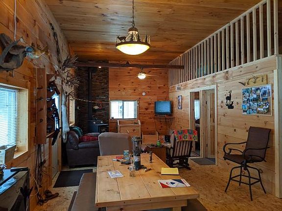 Secluded cabin on a dead-end Rd in western Price County! This well-built cabin offers rustic Northwoods charm with pine walls and ceilings, freestanding wood stove with an outstanding decorative stacked stone backdrop. The cabin is wired for generator use, there are 2 bedrooms, loft, large open area for living and dining area. There is luxury insulated and finished outhouse with a flush toilet and shower system using water from a rain collection system. A metal carport and an additional generator shed provide storage. The land boasts mature red oak, maple, basswood along w/thicker areas for excellent cover for holding deer, bear & grouse. It also borders active AG fields to the east and food plot on the south end turns this property into a whitetail corridor. This land/cabin package really does have it all with excellent hunting, beautiful maintenance free cabin, privacy being at the end of a dead-end rd. & the area roads are ATV friendly. Call today to schedule your personal tour!