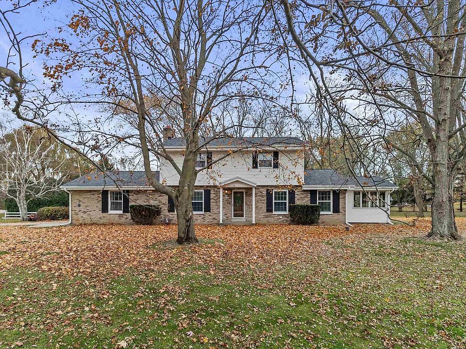 This remarkable 4-bedroom colonial home is perfectly situated across from the Oconomowoc Golf Club on a stunning 1+ acre lot in the Town of Oconomowoc. The property boasts mature trees and a private backyard. Inside, enjoy hardwood floors throughout. The spacious living room connects to a dining room, and the family room features a brick fireplace. The kitchen includes an island, granite countertops, bay window, and appliances. A main floor den can double as a laundry-mud room. The 3-season room offers a vaulted ceiling and windows galore. Full baths serve both levels, with four bedrooms upstairs. The lower level has a rec room and storage. Newer roof, furnace, A/C, and water heater. The backyard features a shed.