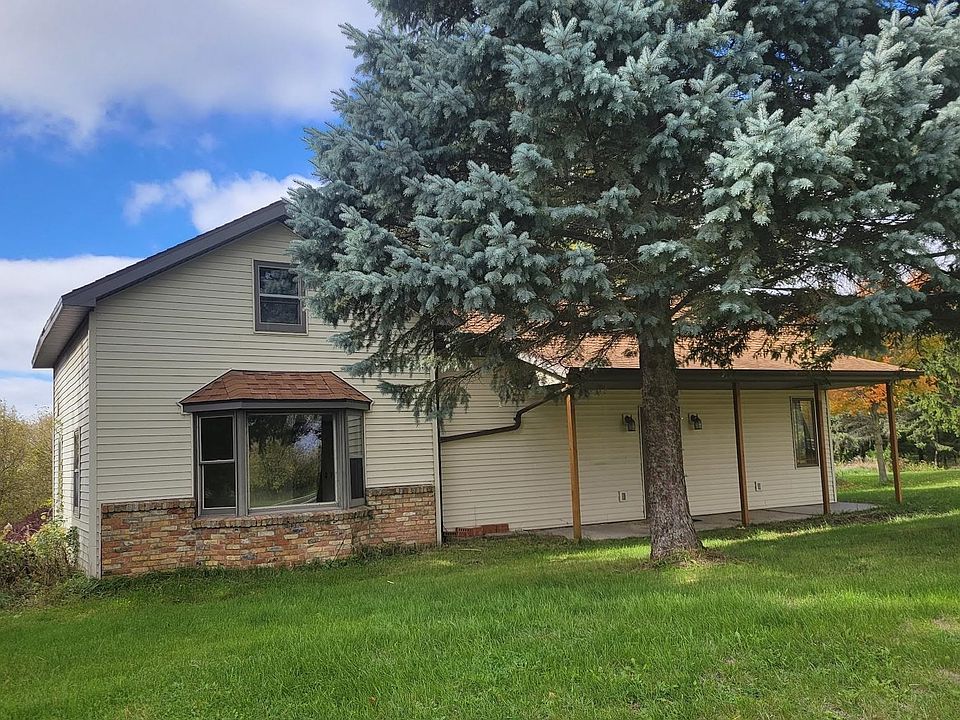 Cute 2 bedroom 1 bathroom country home on 2.74 wooded acres. Renovated between about 2007 & 2011, open concept living room & kitchen, patio doors to wood deck with steps, bay window in bedroom, classy oak/metal staircase, laminate flooring, 6 panel doors, main floor laundry, covered front porch, basement has a bar, laundry area & patio doors. Animals are allowed. Centrally located about 1 hour between Milwaukee, Madison & Oshkosh. The main floor bedroom carpet has been removed - there is only pad on the floor - the barn is in very poor condition! **Please note: Offers will be addressed on Tuesday, Oct, 24th, at 5:00pm.