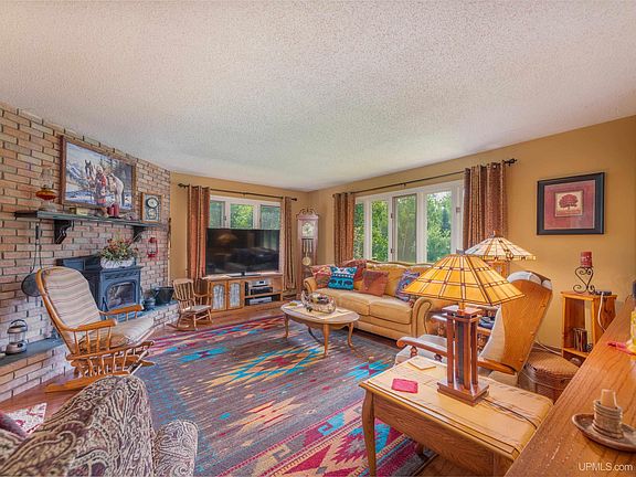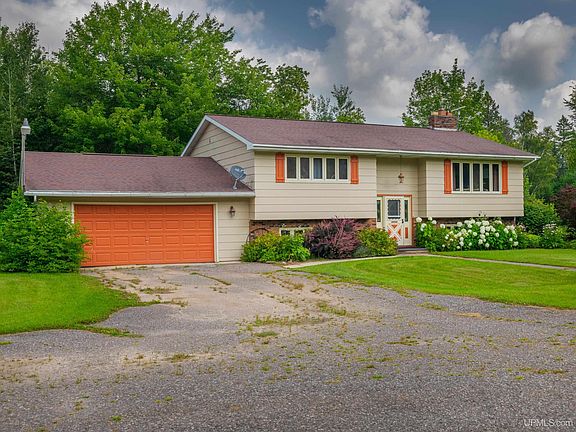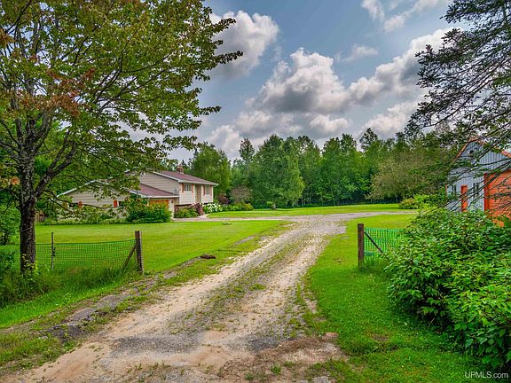 This cozy 4 bedroom/3 bath bi-level on 6 acres in Rumely capitalizes move-in ready country living. The main level living room has wide south facing windows and a brick fireplace with pellet stove insert. The eat-in kitchen with newer appliances and an island along with loads of counter space is perfect for hosting holiday dinners. When the weather is right, move the party outdoors to the east-facing deck that overlooks the pond. Perfect spot to bird watch with your morning coffee or gather the gang for a BBQ. The primary bedroom along with the guest bedroom have attached full baths. The lower level includes a family room with another pellet stove as well as a sauna with shower, bath, laundry/mechanical space, mudroom and 2 more bedrooms. The attached 2-car garage is extra deep for work bench space and includes access to the back yard, which is level and cleared and prime for growing apples, grapes and even 2 chestnut trees. The 8x16 shed is handy for garden tools, but you'll really appreciate the 30x42 heated pole barn with 9' door and 200 amp service. This workshop is a "Yooper's Dream Come True." With snowmobile Trail #8 just 1/8 mile across M-94, and circled by the Hiawatha National Forest, you'll have room to roam exploring trails, waterfalls, lakes and shoreline. Best of all, this base camp comes with plenty of space to store and maintain all the toys and tools from sleds and skis to boats and trailers. In fact, nothing missing here but you. Schedule a showing today.