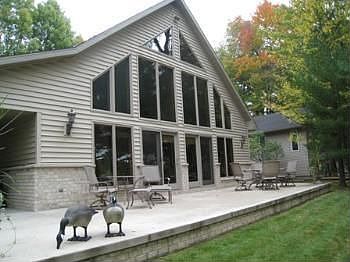 Start w/a 25 ft wall of windows viewing Shawano Lake Channel, a short boat ride to either Shawano Lake or Wolf River, add a covered porch, amenities galore & yes...a perfect place! Extra lg heated 3 st garage w/8X10 doors, & stairs to LL. Kitchen hosts granite tops, lg island, glass block windows by sink for privacy, hrdwd floors, & open concept. Great spacious loft, 2 bdms & full bath upstairs.