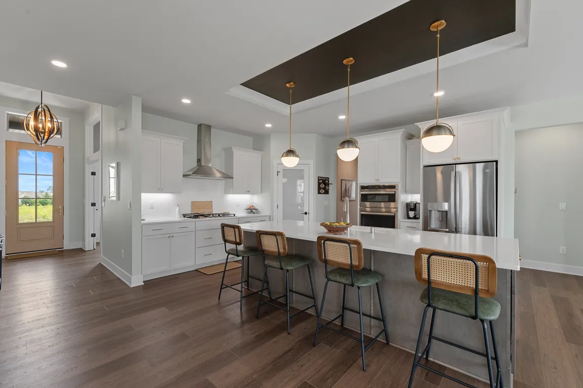 Why wait to build when you can move right into this stunning former 2024 Korndoerfer Danbury model? This executive ranch showcases an open-concept design highlighted by a box-up ceiling with crown molding in the great room, a striking stacked-stone fireplace, and a chef's kitchen with a large island, quartz countertops, tile ...