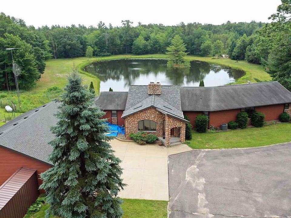 WOW! 120 acres mostly wooded lands only a few miles from Castle Rock lake with a sprawling 5-6BR/4BA home could be yours! Stunning pond that's stocked & ready for fishing & swimming right out your door! Excellent hunting & hiking. Kitchen w/dinette area, living/dining rooms share a dual sided fireplace. First floor master bedroom/bath w/walk-in closet. All good sized bedrooms w/great closet space. Walk-out lower level features a family room w/fireplace, bonus room, bedroom, bath & generous storage space. 3C att. garage. HUGE multi-level outbuilding. Pond views from almost every room! 71 Acres in Managed Forest.