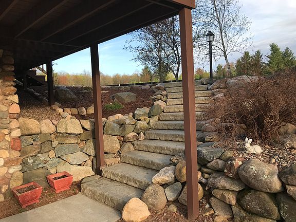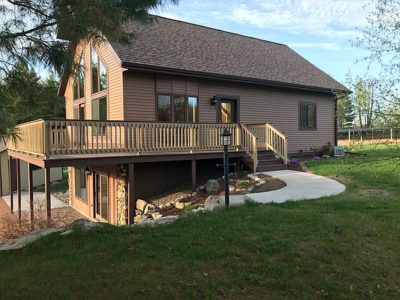 Nestled in 40 acres this newly remolded 3 bedroom 2 bath house has cathedral ceilings with open loft looking out onto land. Secluded from neighbors you'll enjoy peaceful quiet that will be perfect for sitting out on wrap around deck. Comes with a detached three car garage with a woodshed attached. This house is move in ready with new tile walk in shower, new paint, and new luxury plank floors running throughout a walkout basement that has a wood burning fire place. Great hunting land with many recreational trails and a trout stream running through it. With a separate driveway to a 7 acre field with another 1 car garage for extra storage. To come see this beautiful home call the owner at: 715-370-6630