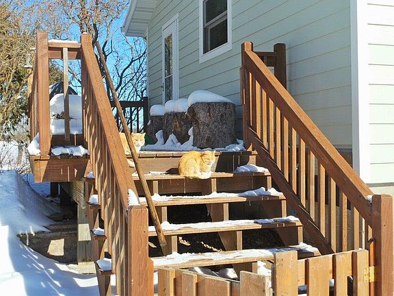 This beautiful 2 bedroom, 100 year old home has much of the original trim, and hardwood flooring. It is meticulously maintained with newer cement siding, barn style roof and windows. It features a full basement, a deck and a private 2 acre setting on a dead end road with fenced organic gardens and fruit trees, grapes and berry bushes. Along with a fenced pasture with lean-to for potential livestock.Cement siding, roof, windows all newer. Conventional septic with drain field. 2 acres, deck, detached 1 car garage, energy efficient and easy to heat. There is a green house, chicken coop, fenced 1+ acre with lean-to for livestock. 100 amp panel, windows and new front porch in 2010, the furnace was replaced in 2019 and the kitchen was redone in 2018.