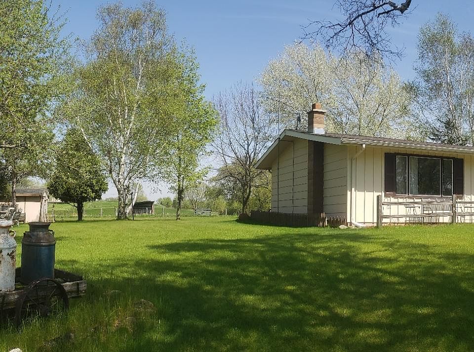RUSTIC CHARMER, 10 peaceful acres features Well maintained ranch 3 bedrooms 1.5 baths. vaulted ceilings in living room and kitchen. Dining area features picturesque views through patio doors, sunny living room west facing picture window-- Home offers great space in basement. Attached 2 car garage plus barn with 3 horse stalls,attached workshop,tack rm,dog kennels and a 30x50 pole shed to store your toys,hay,rent out--bring your ideas--Home is set back off road--THIS IS A SPECIAL FIND,COME OUT AND DISCOVER THE COUNTRY!! .