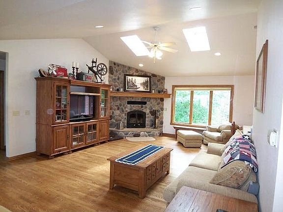 Approximately 200' of pristine Red River frontage with nearly 1.5 acres. Nicely landscaped and the site of a beautiful 3.600 SF, 4 bedroom, 3 bath home. Features include a great room with fireplace, cathedral ceilings, skylights, and hardwood floors. Also offers a master bedroom suite with ceramic double walk-in shower and whirlpool tub, plus a lower level walk-out with a spacious family room. All located only minutes from town in one of Shawano's best subdivisions. SRW5121