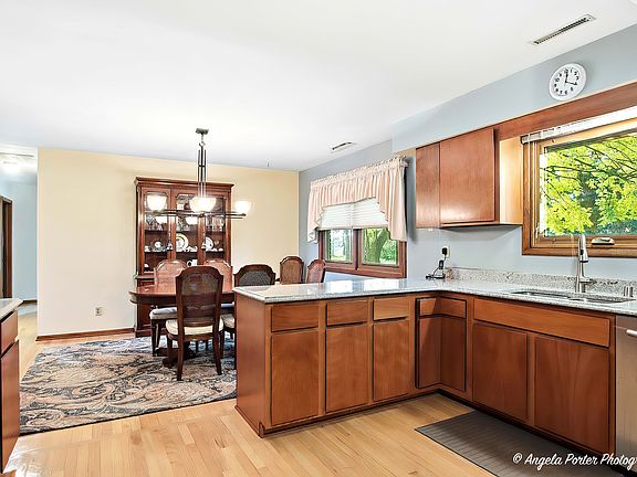 Spacious brick ranch on 1 acre in Genoa City on a well and septic that been well loved and taken care of by the same family. This inviting 4-bedroom home features a large kitchen with dining area, granite counters, and beautifully maintained original wood cabinets. 3 bathrooms with recent updates to the main bath that has a ceramic tile bath and modern finishes. Enjoy two fireplaces-one in the living room and one in the finished basement with a cozy family room and wet bar. A flexible den/TV room is perfect for an office or formal dining space. Additional highlights include a large laundry room with extra storage in the basement, a workshop area. Home Includes boiler heat, and central A/C. It is truly a well-kept home offering comfort and versatility and room for an outbuilding.