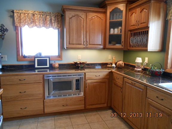 A well built home with 8" walls that have a R26 insulation factor. A well planned layout as every room seems to flow together. Vaulted and tray ceilings in the main rooms. A beautiful Lannon stone wood fireplace can virtually heat the entire main level. There is also forced air and central air conditioning, and to compliment the coziness there is in floor heat in the lower basement level as well as in all the tiled floors on the main level. There are three nice sized bedrooms on the main level as well two full bathrooms. A large laundry room and a large walk in pantry compliment the all custom made hickory kitchen cabinets and granite counter tops in the open concept kitchen, dining and great room areas. In the lower level, a large rec area, another full bath and bedroom. There is an attached garage and also another 40 x 60' insulated shop building and black topped drive. A 1.5 acre pond in front with hybrid fish and a sandy beach. Oh yea, the garage floor is heated too! And 40 acres