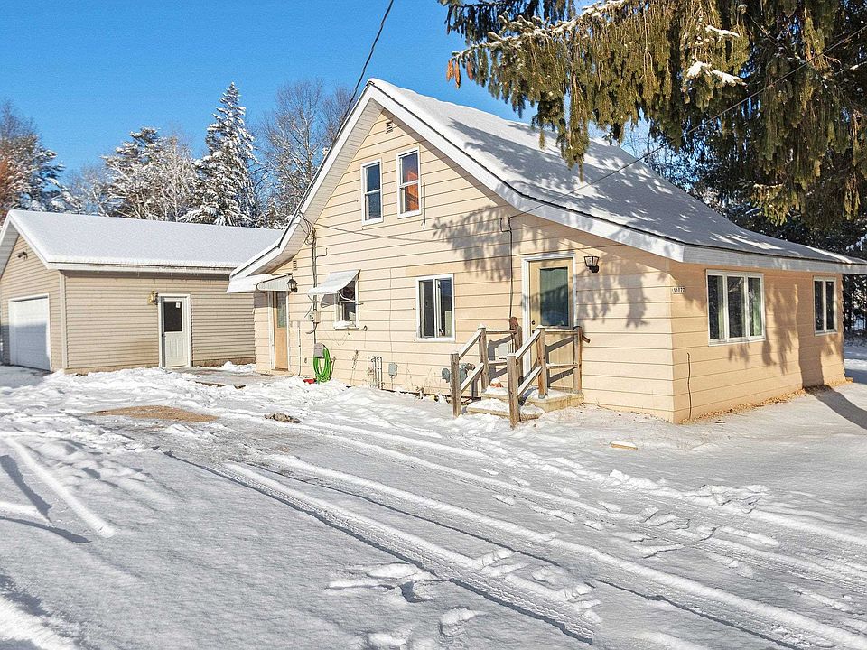 Adorable 3 bedroom 1 bath home on a generous sized lot just outside the city limits! Large 2 stall detached garage built in 2011 with room for both vehicles AND toys! Additional 14x8 shed for extra lawn equipment storage! Central air installed in 2022 and updated electrical! Minutes from Shawano Lake, ATV & snowmobile trails, downtown Shawano, local eateries and more! Location, Location, Location!