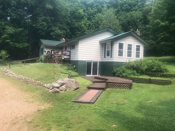Beautifully wooded 2.25 acre property in the Northwoods of Wisconsin, located Southwest of Antigo. 1,800+ sq. ft. with 3 bedrooms, two full newly remodeled bathrooms, large living room, kitchen and sunroom on the main floor of this 2 level home. Newly remodeled master bathroom comes with Jacuzzi tub and walk-in double shower and the second bathroom is equipped with new stackable washer/dryer, walk-in rainfall shower and lots of storage. New LVT flooring has been installed throughout main floor. The property boasts plenty of outdoor living space with front porch, two spacious decks on walk-out lower level and another walk-out back deck, fire ring for gatherings, with a good mix of sun and shade areas. There is a partially- finished walkout lower level that includes potential living space and lots of storage. Recent updates include new plumbing, new tankless water heater and water softener, new door and windows, and freshly painted kitchen with new flooring. There is a pellet stove in the living room along with 80 bags of pellets, and a wood-burning fireplace in the sunroom. Rounding out this property is a newer 24 x 40 metal 2.5 car garage with plenty of work and storage space, and another 12 x 40 outbuilding currently being used as a workshop. House was fitted with new metal roof within the last 10 years. This beautiful property is also home to 2 acres of mature sugar maples, an established and bearing Honeycrisp apple tree, a large productive raspberry patch and multiple grape vines.
