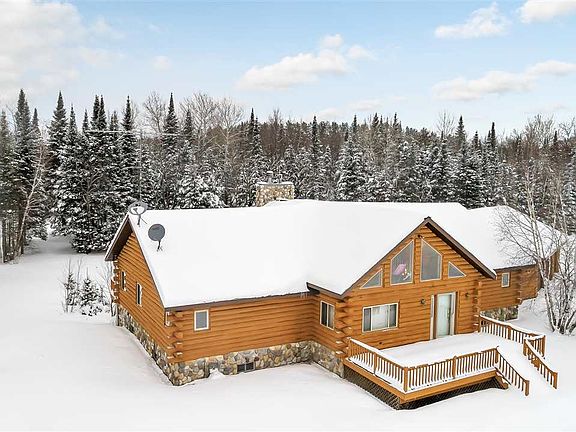 A gorgeous, real log home - a perfect up north retreat. This home has beautiful decks to enjoy the scenery of it's wooded surroundings. Enjoy 51.8 acres of beauty! Made of pine logs with a cedar ceiling and hickory kitchen cabinets - the details are stunning. There are 2 fireplaces that add to the warm atmosphere.There is a relaxing hot tub included in the lower level. A partially fenced yard is a wonderful play space for families. This huge property is a great deal you can't miss! ** Motivated Seller!!!!** *Acreage and square footage estimates are provided per the seller.