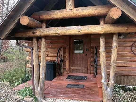 Full-log homeMontello river frontagePeaceful viewsPrivate nature retreatSoaring woodworkMassive fieldstone wood-burning fireplaceWalk-out deck