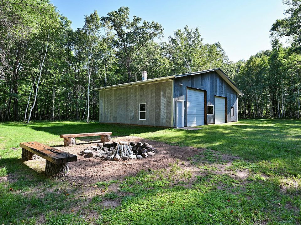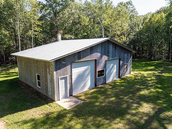 OPEN HOUSE SATURDAY, AUGUST 30TH, 10:30am - 12noon. This 10-acre wooded parcel near Spooner combines privacy, functionality, and year-round recreation. A renovated 52’ x 30’ pole building features 12-foot ceilings, a concrete floor, and two finished rooms including a bathroom. Recent updates include an 82-foot well with new pressure tank, pump, wiring, and copper plumbing, plus a conventional septic system with 1,000-gallon tank. Electrical service is upgraded with 200 amps at the main panel and 100 amps to the building, wired for 120/240 volts. For added convenience, the back of the building offers 50-amp and 35-amp camper hookups along with an RV sewer connection. About one acre has been cleared and leveled, providing an ideal space for building, gatherings, or outdoor activities, while the surrounding oak forest ensures privacy and a peaceful retreat. Whether you envision a getaway, hunting base, or future home, this property is ready to make it yours.