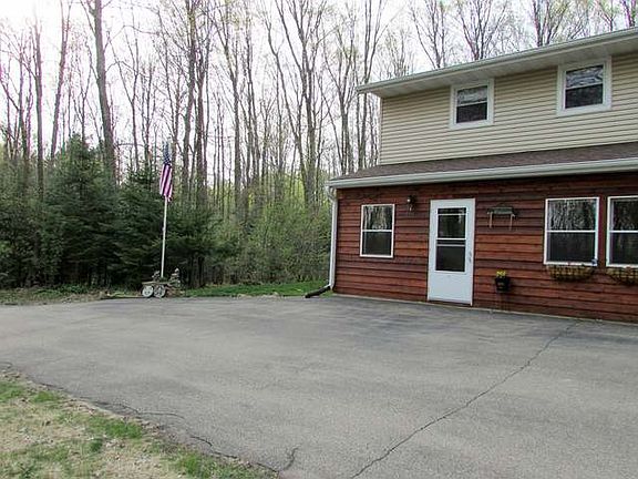If you are looking for that affordable rural property that is close to Antigo then you just hit the jackpot! This adorable 3 bed/1 bath home was built in 2002 on a raised slab that was well insulated along with the rest of the home making it very inexpensive to heat! Home features stackable washer/dryer on main level (included), bathroom,open concept kitchen, living room, office and large breezeway. Wide staircase leads to the upper level where you will find 3 nice sized bedrooms. The attached 2 car garage is also insulated and features extra storage, a 16x28 rec room or guest sleeping quarters on upper level with a 3 season room on side of garage so you can sit and enjoy watching the deer come in as you play cards or read. Home sits on 5.1 wooded acres and includes the 8x8 ground deer stand, and the 10x12 metal shed (on a slab). This would make a great starter home or Vacation property! Come check it out for yourself!