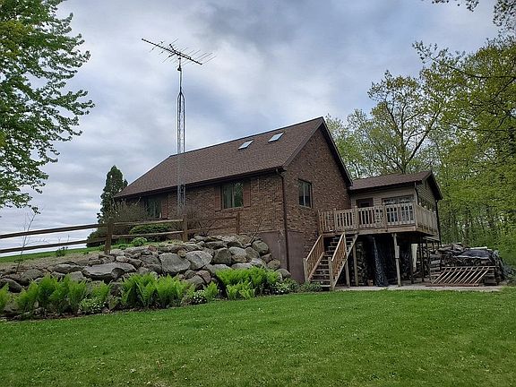 You are going to want to see this beautiful brick country home. The location doesn't get much better than this. Only 1 mile off Hwy 151 for an easy commute. Enjoy your privacy with a large front yard and a gorgeous back yard filled with trees, wildlife of all kinds, and views you'll want to wake up to every morning. Enjoy your main level en suite BR with a newly remodeled bathroom, vaulted ceilings, and skylight. The kitchen features new countertops, backsplash, and a breakfast bar. The LR has a beautiful stone fireplace from floor to ceiling. A generous size 3 seasons room has captivating views of your wooded backyard, with a deck and new staircase. The basement features a large rec room, bathroom, office, and walkout doors to a patio area. The garage is even heated!