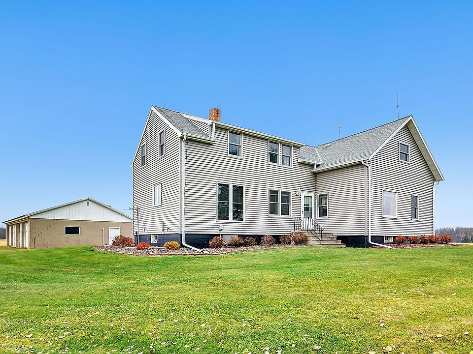 Spacious country farmhouse with 4 car garage & 12x12 storage shed on .75 quiet acres surrounded by green space. There are many updates including new flooring in kitchen & dining, garage roof, house roof, mound system, siding, windows and whole house insulation. Main level boasts a living room, applianced eat-in kitchen with plenty of cabinet space, formal dining room, foyer entry, mudroom, master bedroom with built-in closet and drawers, 2nd bedroom plus full bath. Spacious upper level boasts 3 additional bedrooms plus a large family or bonus room. Full lower level with laundry hook-ups. Close highway access for an easy commute.