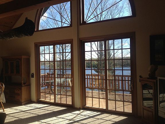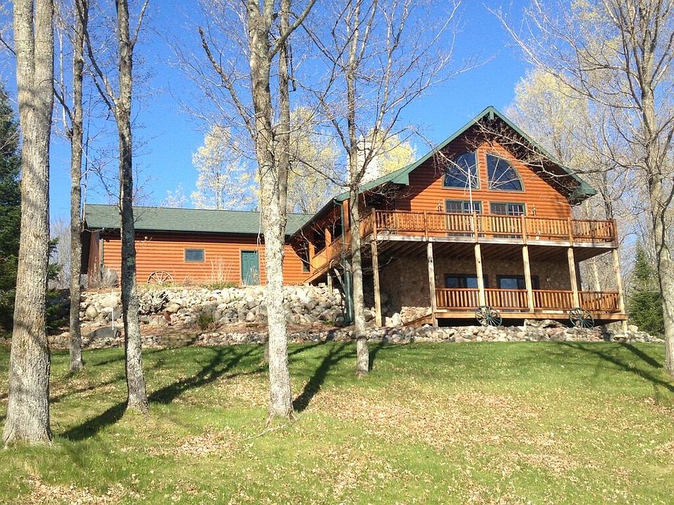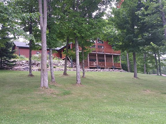 Beautiful home nestled on a peaceful wooded property featuring tons of wildlife in a peaceful and private setting on almost 3.5 acres. The eagles visit regularly as well as deer and a few fox. There is plenty of wildlife, great fishing and wonderful sights on this property. It is landscaped beautifully and the home has a beautiful view from every window. The home was built with the views in mind as well as functionality and growth and needs of the family. There is a queen size log beg in the home still and if you would like it to stay with the home in the loft, you can negotiate that as well. Home includes all appliances currently in the home. All are in excellent operating and esthetic condition. The basement has a potential 4th bathroom with the plumbing pipes already in place waiting for fixtures. There is a private office/den or even a small 4th bedroom as well. It has a partially unfinished recreation room and a workshop downstairs as well. Plenty of room for family to relax and look out the double walkout patio doors leading to the lake. The custom blinds and the rest of the moulding and paint, stains and extras that were to be installed in the basement are also being left with the home to finish the basement. The property features a second garage on the upper portion of the property not far from the house, for extra storage, a snow plow or gardening equipment and more.