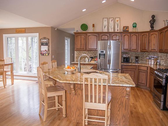 Quality Ranch Home On 4.3 Acres! Stunning Views of the Surrounding Countryside. Open Concept Living Area w/Vaulted Ceilings & Fireplace. Updated Kitchen w/Island, Granite Counters, Stone Back Splash & Stainless Appliances. Dining Room. Master Suite w/Walk-in Closet + Master Bath w/Double Vanity & Whirlpool Tub. Finished Walkout Lower Level Features Rec Rm + Wet Bar, 4th Bedrm, 3rd Full Bath, Workout Rm & a Bonus Rm (Potential 5th Bedrm). Newer Furnace, AC & On Demand Water Heater! Adjacent To Evergreen Golf Course & Snowmobile Trails.